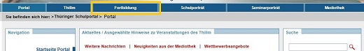 Um im Veranstaltungskatalog für Lehrerfort- und -weiterbildungen in Thüringen recherchieren zu können, wählen Sie bitte in der Quernavigation den Punkt FORTBILDUNG aus.