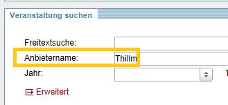 - Sucht man also ohne weitere Einschränkung nach Veranstaltungen, die mit 15 beginnen, erhält man alle Veranstaltungen des Anbieters Thillm für das Jahr 2014.