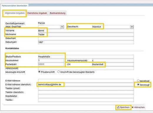Pflege der persönlichen Angaben: Meine persönlichen Daten