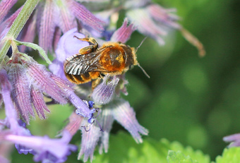 Gehörnte Mauerbiene auf einer Apfelblüte