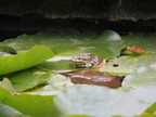 Teichfrosch auf Seerosenblatt