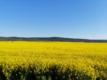 Das Foto gehört zur Serie "Nutzpflanzen". Es zeigt ein blühendes Rapsfeld. Das Bild ist unter CC0 lizenziert und kann somit frei verwendet werden.