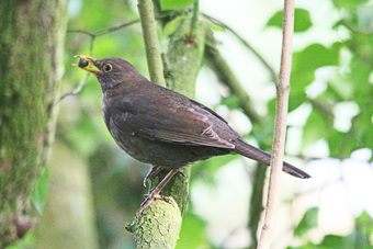 Amselmännchen und Jungvogel