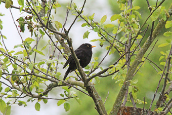 Das Foto hehört zur Serie "Amseln". Es zeigt eine Amsel (Turdus merula), auch Schwarzdrossel genannt, eine Vogelart der Familie der Drosseln. Die Männchen sind schwarz gefärbt und haben einen gelben Schnabel, das Gefieder der Weibchen ist größtenteils dunkelbraun. Es gelten die Nutzungsbedingungen der Mediothek und Pixiothek.
