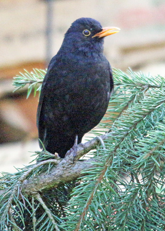 Das Foto hehört zur Serie "Amseln". Es zeigt eine Amsel (Turdus merula), auch Schwarzdrossel genannt, eine Vogelart der Familie der Drosseln. Die Männchen sind schwarz gefärbt und haben einen gelben Schnabel, das Gefieder der Weibchen ist größtenteils dunkelbraun. Es gelten die Nutzungsbedingungen der Mediothek und Pixiothek.