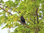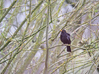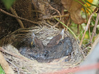 Das Foto hehört zur Serie "Amseln". Es zeigt ein Amselmännchen mit einem Jungvogel. Die Männchen sind schwarz gefärbt und haben einen gelben Schnabel, das Gefieder der Weibchen ist größtenteils dunkelbraun. Es gelten die Nutzungsbedingungen der Mediothek und Pixiothek.