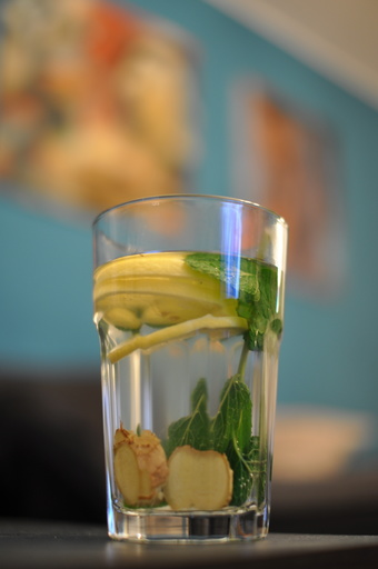 Das Foto zeigt eine erfrischendes Limonade. Verwendet wurde Zitrone, Ingwer, Minze und Wasser. Das Bild ist unter CC0 lizenziert und kann somit frei verwendet werden.