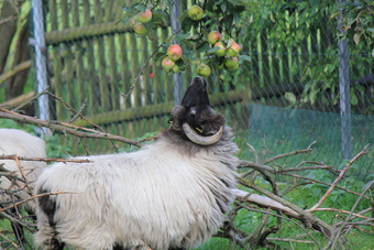 Schafbock am Apfelbaum