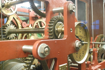 Das Foto gehört zur Serie "technischen Anwendungen". Es zeigt das Uhrwerk einer Turmuhr. Das Bild ist unter CC0 lizenziert und kann somit frei verwendet werden.