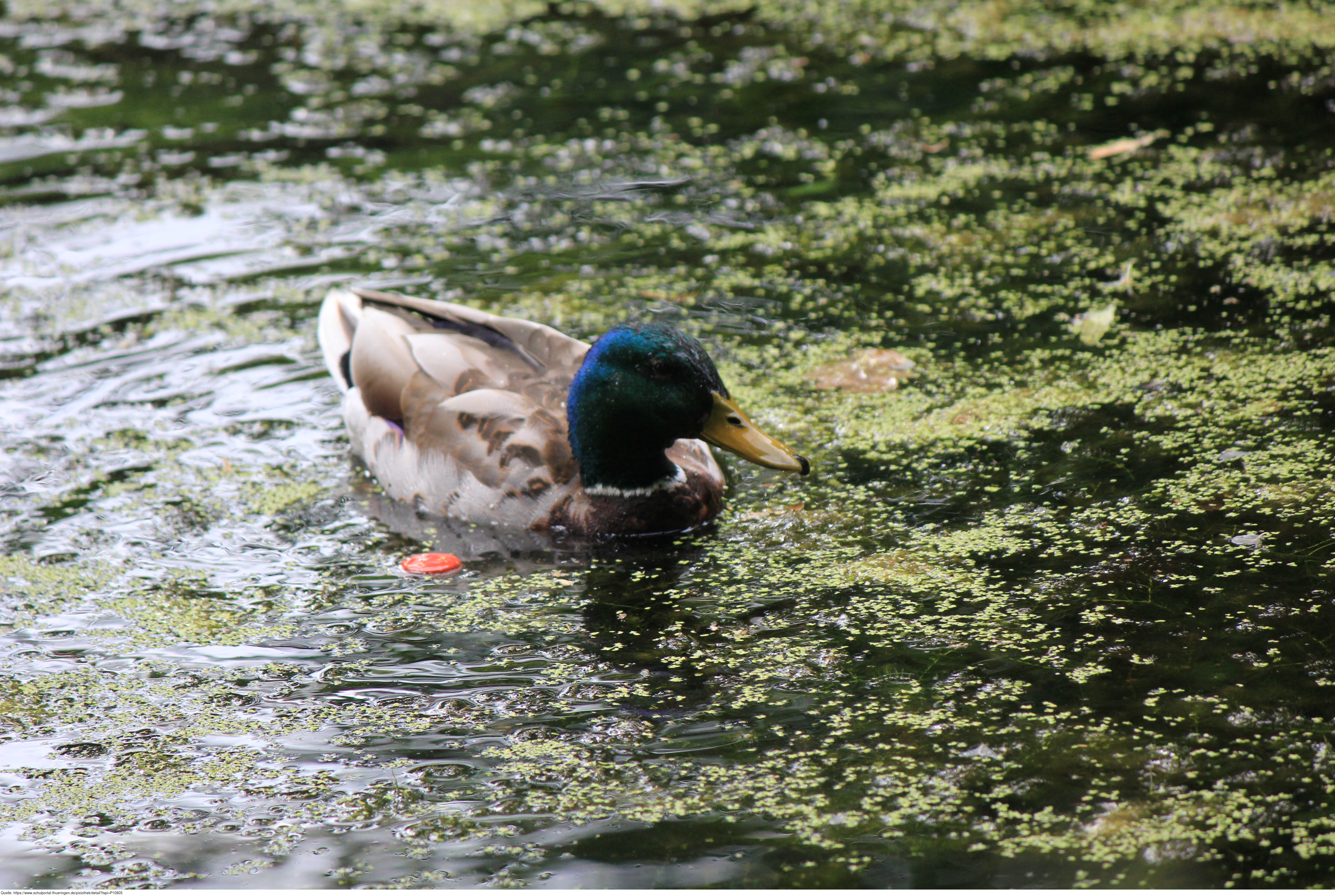 Das Foto zeigt eine Stockente (Anas platyrhynchos). Die Stockente ist sehr anpassungsfähig und kommt fast überall vor, wo es Gewässer gibt. Das Bild ist unter CC0 lizenziert und kann somit frei verwendet werden.