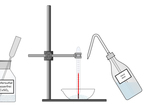 Das Foto gehört zur Serie "Experimente Chemie". Es zeigt den Aufbau eines Experiments mit Stativfuß, Stativklemme und Einhals-Rundkolben. Das Bild ist unter CC0 lizenziert und kann somit frei verwendet werden.