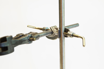 Das Foto gehört zur Serie "Experimente Chemie". Es zeigt, wie eine Reagenzglasklammer mit Doppelmuffe am Stativ befestigt wird. Das Bild ist unter CC0 lizenziert und kann somit frei verwendet werden.