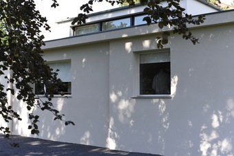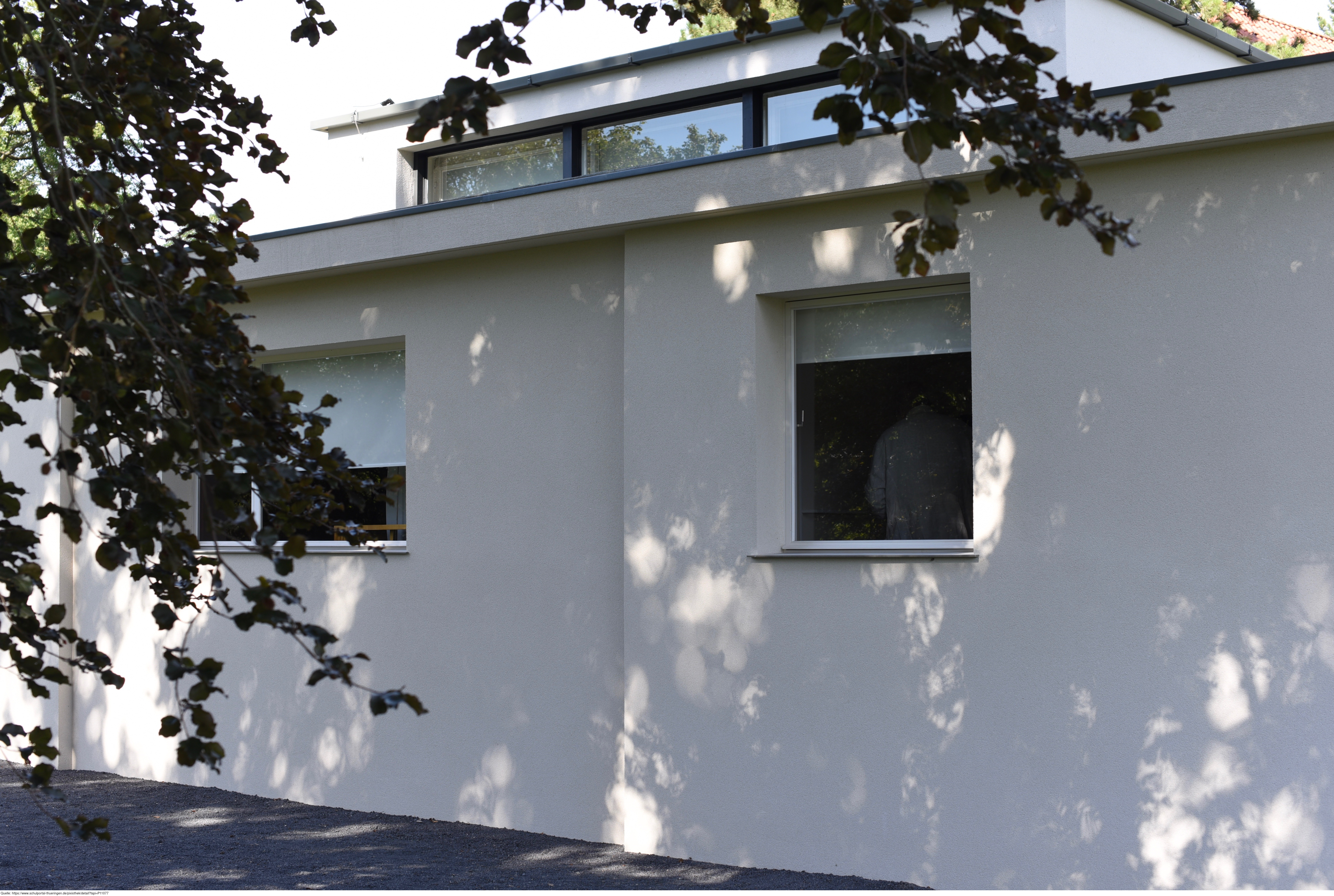 Das Foto gehört zur Serie "Bauhaus in Weimar". Das Musterhaus „Am Horn“ ist ein in Weimar errichtetes Versuchshaus des Staatlichen Bauhauses. Es war ein zentrales Element der ersten Bauhaus-Ausstellung vom 15. August bis 30. September 1923. Für das Bauhaus-Versuchshaus wurde der Entwurf von Georg Muche realisiert. Die praktische Umsetzung des Entwurfs Muches besorgten Walter March und Adolf Meyer vom Gropius’ Architekturbüro. Die Ausstattung basierte auf einem Gemeinschaftswerk aller Werkstätten des Bauhauses.