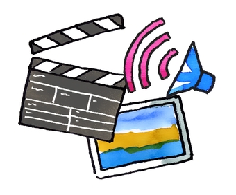 Das Bild gehört zur Serie "Medien". Es zeigt ein gezeichnetes Bild für Multimedia. Es gelten die Nutzungsbedingungen der Mediothek und Pixiothek.