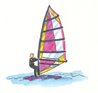 Das Bild gehört zur Serie "Sport". Es zeigt ein gezeichnetes Bild zum Windsurfen. Es gelten die Nutzungsbedingungen der Mediothek und Pixiothek.