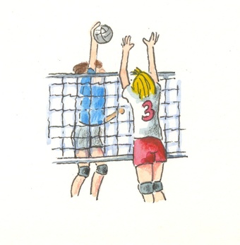Das Bild gehört zur Serie "Sport". Es zeigt ein gezeichnetes Bild zu Volleyball. Es gelten die Nutzungsbedingungen der Mediothek und Pixiothek.