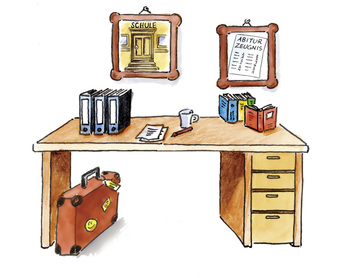 Das Bild zeigt einen gezeichneten Schreibtisch. Es gelten die Nutzungsbedingungen der Mediothek und Pixiothek.