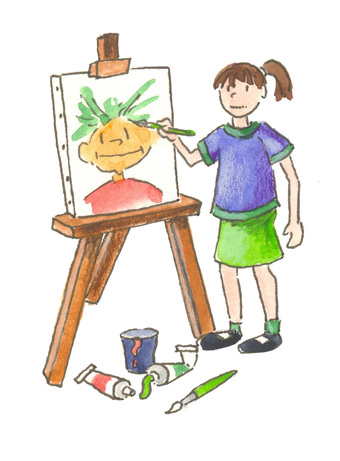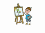 Das Bild zeigt ein Mädchen beim Zeichnen an einer Staffelei. Es gelten die Nutzungsbedingungen der Mediothek und Pixiothek.