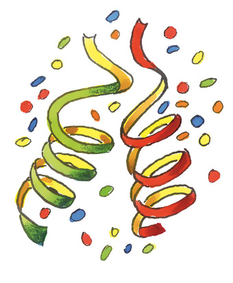 Das Bild zeigt gezeichnete Luftschlangen und Konfetti. Es gelten die Nutzungsbedingungen der Mediothek und Pixiothek.