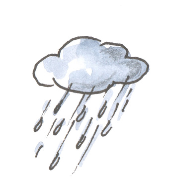 Das Bild zeigt eine gezeichnete Wolke aus der Regentropfen fallen. Es gelten die Nutzungsbedingungen der Mediothek und Pixiothek.