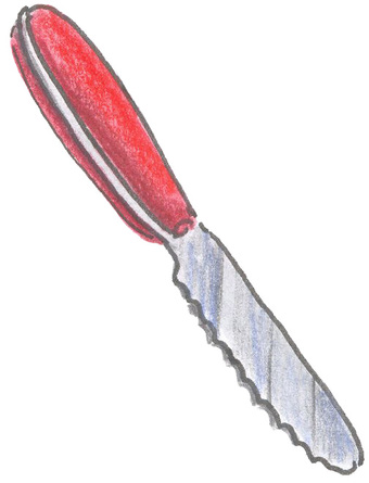 Das Bild gehört zur Serie "Hauswirtschaft". Es zeigt ein gezeichnetes Messer als Teil vom Besteck. Es gelten die Nutzungsbedingungen der Mediothek und Pixiothek.