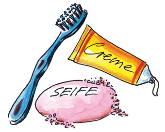 Das Bild gehört zur Serie "Hygiene". Es zeigt zum Thema Körperpflege: Seife, Zahnpasta und Zahnbürste. Es gelten die Nutzungsbedingungen der Mediothek und Pixiothek.