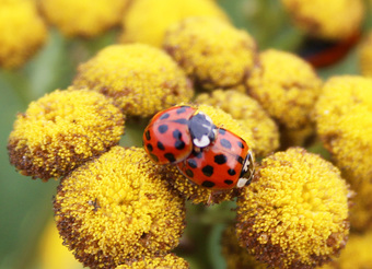 Das Foto hehört zur Serie "Käfer". Es zeigt zwei Dreizehnpunkt-Marienkäfer oder Dreizehnpunktige Sumpfmarienkäfer (Hippodamia tredecimpunctata) aus der Familie der Marienkäfer. Es gelten die Nutzungsbedingungen der Mediothek und Pixiothek.