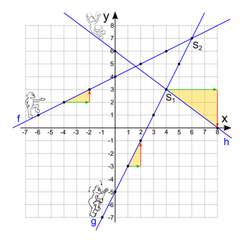 Das Bild gehört zur Serie "Mathematik, lineare Funktionen". Es zeigt im Koordinatensystem drei lineare Funktionen. Die Funktionsgleichungen sind zu ermitteln. Weiterhin können Koordinaten von Schnittpunkten und Nullstellen abgelesen werden. Das Bild steht in den Ausführungen normal, leichte Hilfen, und mehrfache Hilfen zur Verfügung. Das Bild ist unter CC0 lizenziert und kann somit frei verwendet werden.