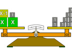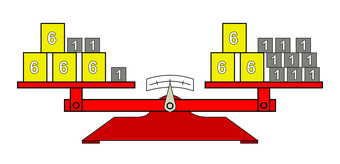 Das Bild gehört zur Serie "Mathematik, Gleichungen". Es veranschaulicht die Probe für die Lösung der linearen Gleichung 24. Durch Einsetzen der gefundenen Lösung für die Variable x entsteht im Bild auf beiden Seiten der Waage die gleiche Summe. Das Bild ist unter CC0 lizenziert und kann somit frei verwendet werden.