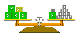 Das Bild gehört zur Serie "Mathematik, Gleichungen". Es veranschaulicht die Lösung einer linearen Gleichung durch Äquivalenzumformung mit dem Bild einer Waage. Zur Gleichung 26 (5x - 1 = x + 11) veranschaulichen die Bilder 26-1 bis 26-5 die Umformungsschritte. Das Bild ist unter CC0 lizenziert und kann somit frei verwendet werden.
