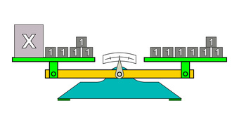Das Bild gehört zur Serie "Mathematik, Gleichungen". Es veranschaulicht eine linearen Gleichung durch Körper auf einer Waage. Das Bild ist unter CC0 lizenziert und kann somit frei verwendet werden.