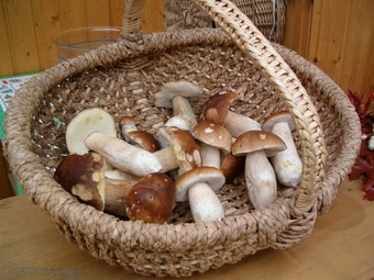 Das Foto gehört zur Serie "Waldpilze". Es zeigt einen Korb mit Steinpilzen (Boletus edulis). Es gelten die Nutzungsbedingungen der Mediothek und Pixiothek.