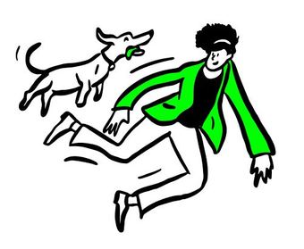 Die Zeichnung "dog-jump" aus der Serie "Open Doodles" zeigt eine junge Frau und einen hoch springenden Hund. Das Bild ist unter CC0 lizenziert und kann somit frei verwendet werden.