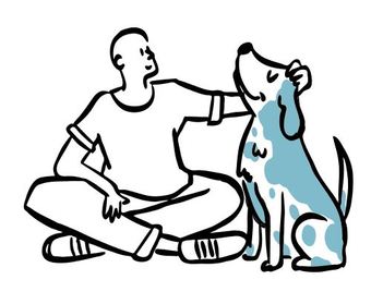 Die Zeichnung "doggy" aus der Serie "Open Doodles" zeigt einen Mann, der einen Hund über den Kopf streicht. Das Bild ist unter CC0 lizenziert und kann somit frei verwendet werden.