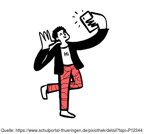 Die Zeichnung "selfie" aus der Serie "Open Doodles" zeigt einen jungen Mann, der sich mit seinem Smartphone selbst fotografiert - Selfie. Das Bild ist unter CC0 lizenziert und kann somit frei verwendet werden.