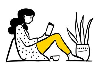 Die Zeichnung "reading-side" aus der Serie "Open Doodles" zeigt eine auf dem Boden sitzende Frau, die in einem Buch liest. Das Bild ist unter CC0 lizenziert und kann somit frei verwendet werden.