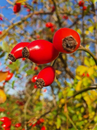 Hagebutten leuchten in der Sonne. Es gelten die Nutzungsbedingungen der Mediothek und Pixiothek.