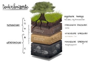 Das Bild verdeutlicht den typischen Aufbau des Bodens und die Zusammensetzung der jeweiligen Bodenhorizonte. Es gelten die Nutzungsbedingungen der Mediothek und Pixiothek.