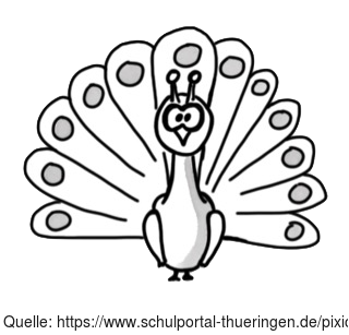Das Bild gehört zur Serie "Grundschulwortbilder". Es zeigt einen Pfau als Symbolbild für den Buchstaben P. Das Bild ist unter CC0 lizenziert und kann somit frei verwendet werden. Es ist neben weiteren Bildern auch hier zu finden: https://moodlelab.moodleschule.de/