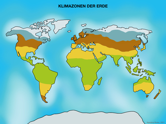 Das Bild verdeutlicht die Lage der Klimazonen der Erde. Bild-Variante: farbig; unbeschriftet. Es gelten die Nutzungsbedingungen der Mediothek und Pixiothek.