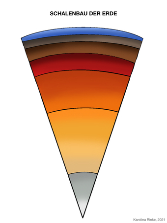 Das Bild verdeutlicht den Schalenaufbau der Erde. Bild-Variante: farbig; unbeschriftet, Variante 1. Es gelten die Nutzungsbedingungen der Mediothek und Pixiothek.