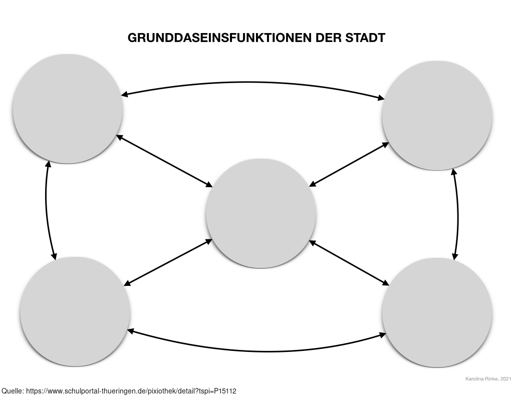 Das Bild verdeutlicht die Grunddaseinsfunktionen (der Stadt). Bild-Variante: leere Vorlage. Es gelten die Nutzungsbedingungen der Mediothek und Pixiothek.