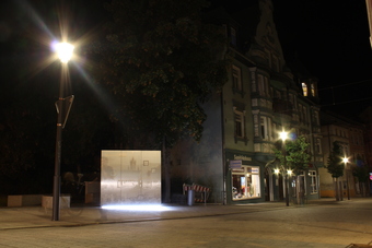 Motiv eines Stadtrundganges durch Pößneck (Ostthüringen) bei Nacht. Standort: Straße des Friedens, Einfahrt Breite Straße. Es gelten die Nutzungsbedingungen der Mediothek und Pixiothek.