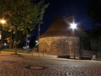 Motiv eines Stadtrundganges durch Pößneck (Ostthüringen) bei Nacht. Abgebildet ist das Gebäude in der Fußgängerzone, in welchem sich die Geschäftsräume der Kreissparkasse Saale-Orla befinden. Es gelten die Nutzungsbedingungen der Mediothek und Pixiothek.