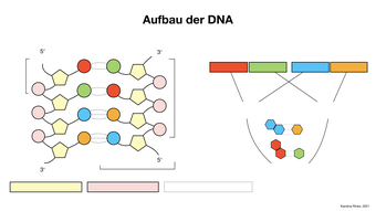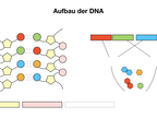 Das Bild verdeutlicht den Aufbau der DNA. Bild-Variante: farbig; unbeschriftet; Variante 2. Es gelten die Nutzungsbedingungen der Mediothek und Pixiothek.
