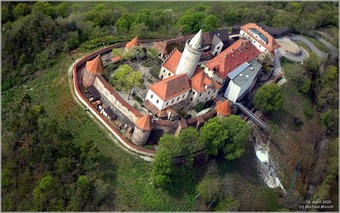 Das Bild gehört zur Serie „Luftbilder Leuchtenburg“. Es zeigt die Leuchtenburg bei Seitenroda, aufgenommen im April 2020.