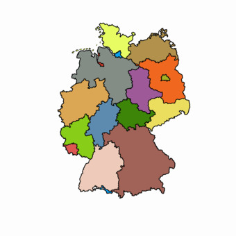 Das Bild zeigt eine gezeichnete Karte von Deutschland mit farblicher Kennzeichnung der einzelnen Bundesländer. Das Bild ist unter CC0 lizenziert und kann somit frei verwendet werden.
