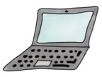 Das Bild zeigt eine symbolische Darstellung eines Notebooks bei einer hybriden Veranstaltung. Die Grafik gehört zur Serie „Mobiles Setup für hybride Veranstaltungen“. Es gelten die Nutzungsbedingungen der Mediothek und Pixiothek.