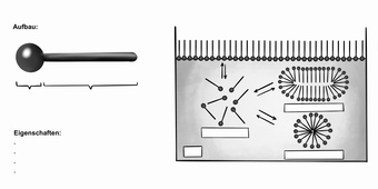 Das Bild verdeutlicht den allgemeinen Aufbau eines Tensids sowie die Mizellenbildung in Wasser. Variante: s/w; unbeschriftet. Es gelten die Nutzungsbedingungen der Mediothek und Pixiothek.