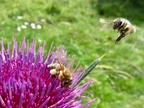 Das Bild gehört zur Serie "Saalfelder Honig", aufgenommen vom Imker Bernd Rümpler, Inhaber von saalfelder-honig.de. Zu sehen ist eine Flugbiene auf einer Kornblume. Es gelten die Nutzungsbedingungen der Mediothek und Pixiothek.